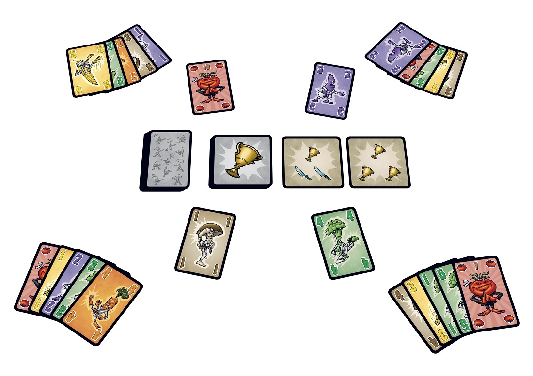 Bei Karate Tomate wird buntes Kampfgemüse in den Ring geschickt – und hat man sich einmal auf eine Farbe festgelegt, muss diese Wahl beibehalten werden. Nur das knackigste Gemüse, das sich bis zum Ende behaupten kann, gelangt an den großen Pott!
