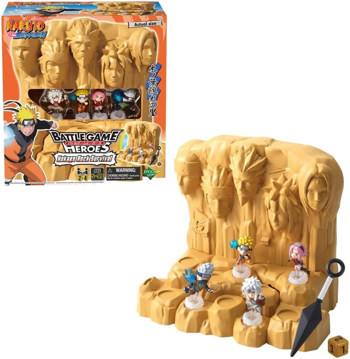 Das Spiel von EPOCH Games bringt das ikonische Hokage Rock aus Naruto Shippuden auf den Spieltisch. Zwei Spieler treten gegeneinander an und steuern je zwei Figuren über das Spielfeld.