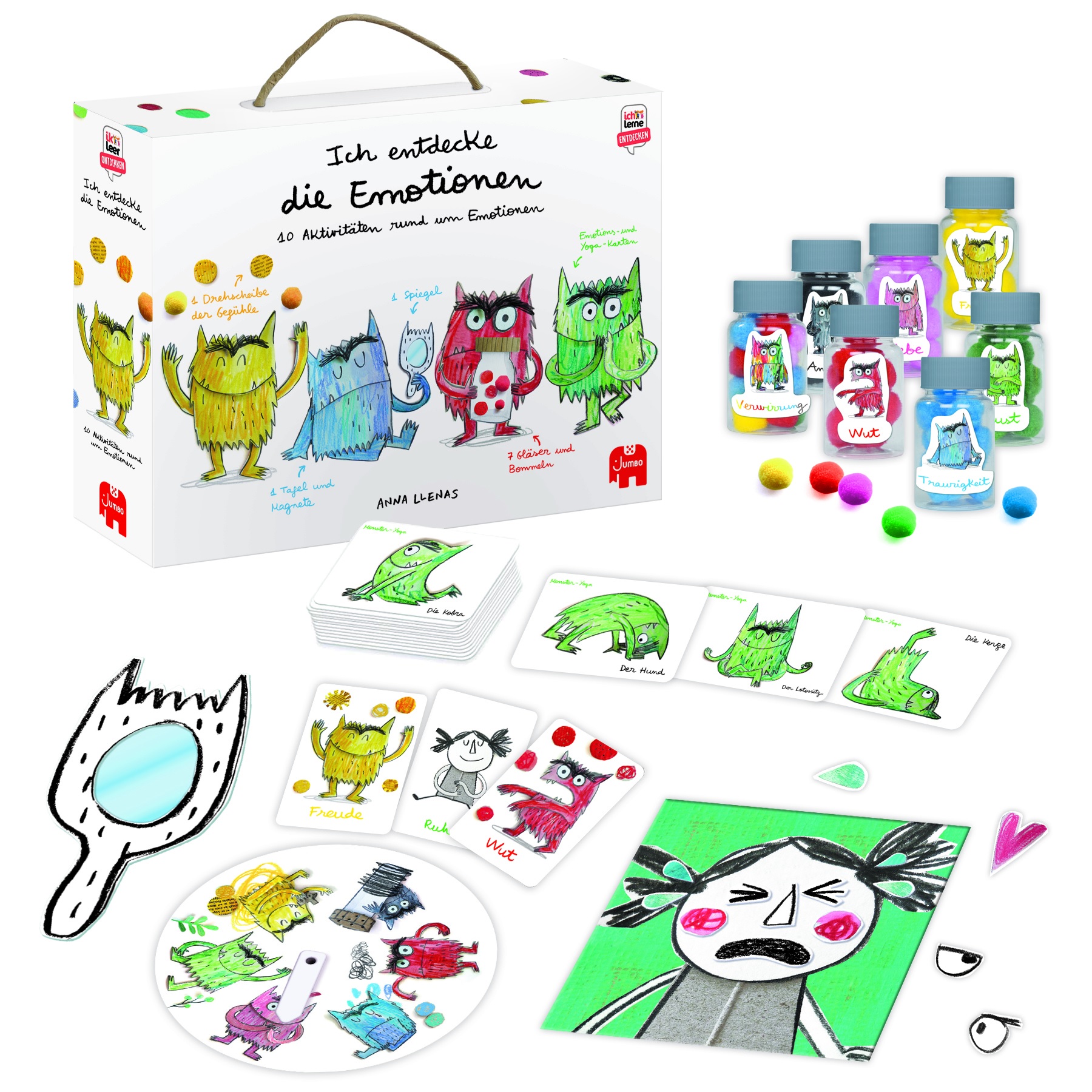 Das Spiel bietet zehn interessante Möglichkeiten, um die Emotionen Wut, Angst, Traurigkeit, Gelassenheit, Freude und Liebe zu entdecken und sie zu benennen. Handlich verpackt im kleinen Koffer finden sich 24 großen Karten, eine Emotionen-Drehscheibe, ein Spiegel und sieben Gefäße für insgesamt 120 Bällchen in sechs verschiedenen Farben.