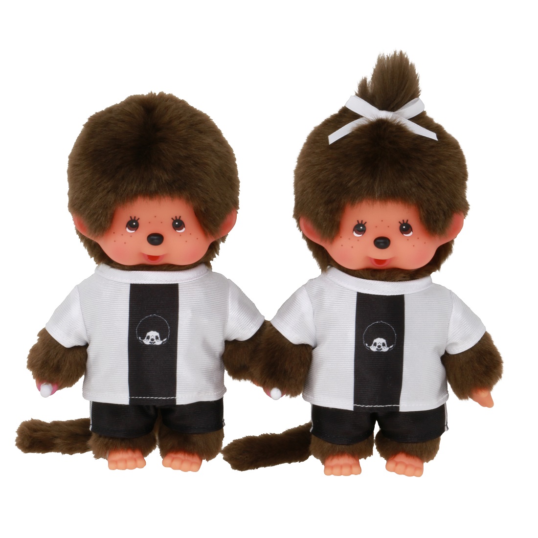 Die Monchhichi-Mädchen tragen passend dazu Baumwollkleider und Haarschmuck im Design der jeweiligen Nationalflaggen. Mit den neuen Frühjahrsmodellen schlüpfen die Kleinen in die Rolle ihres Lieblingsfußballers und nehmen ihn mit zum nächsten Spiel!