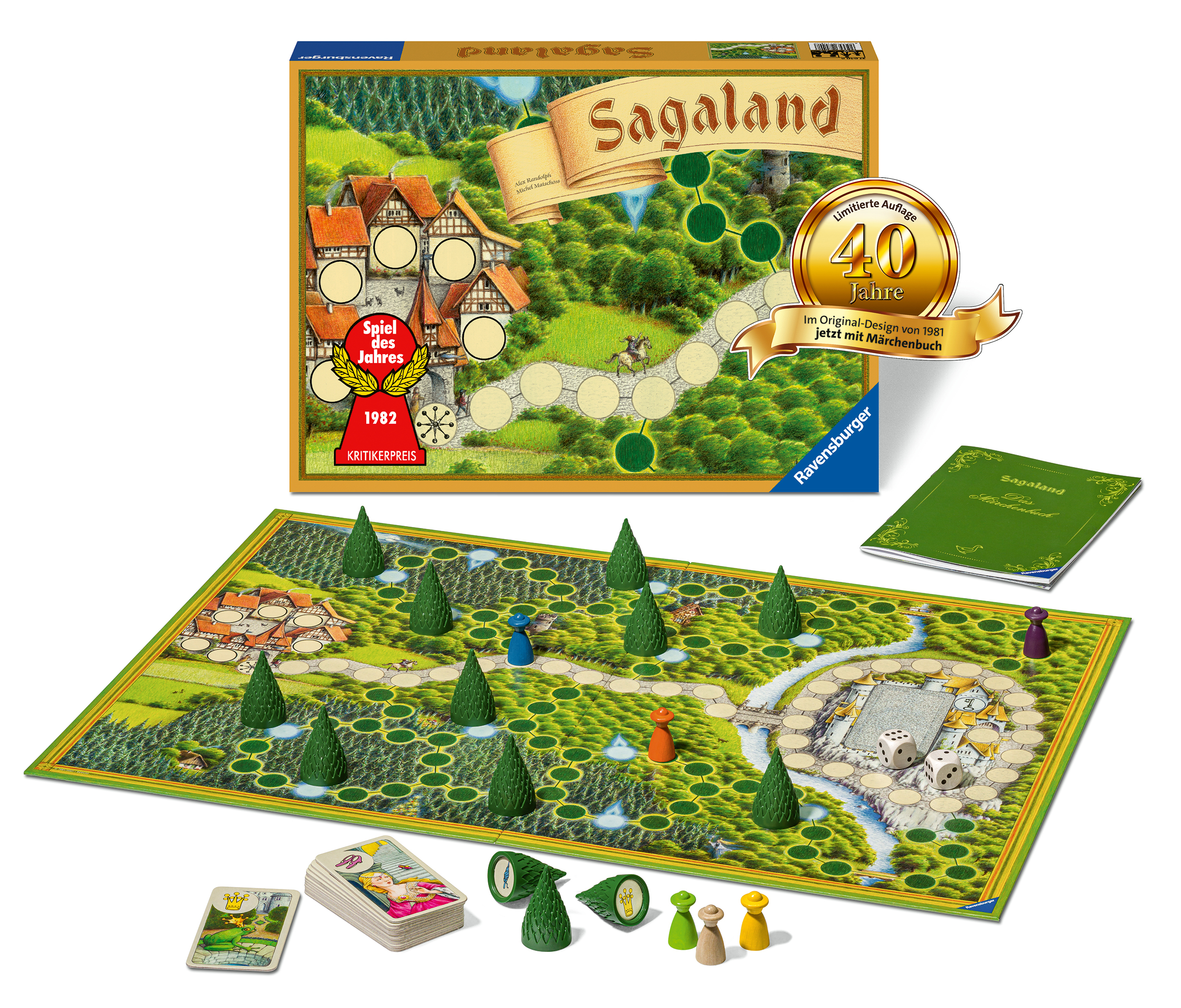 Seit 40 Jahren weltbekannt – das märchenhafte Sagaland. Über drei Millionen Mal ging das beliebte Ravensburger Familienspiel weltweit über die Ladentische. Zum Jubiläum erscheint der Klassiker als limitierte Sonderedition im Design der Erstausgabe von 1981. Zusätzlich gibt es den zum Spiel passenden Lesestoff: Ein Märchenbuch mit allen Geschichten, die in Sagaland vorkommen. So märchenhaft wie Sagaland selbst ist auch die Entstehungsgeschichte: Die Idee zum „Spiel des Jahres 1982“ entstand bei einem ausgiebigen Waldspaziergang und einem Aufenthalt im sagenhaften Dornröschenschloss.