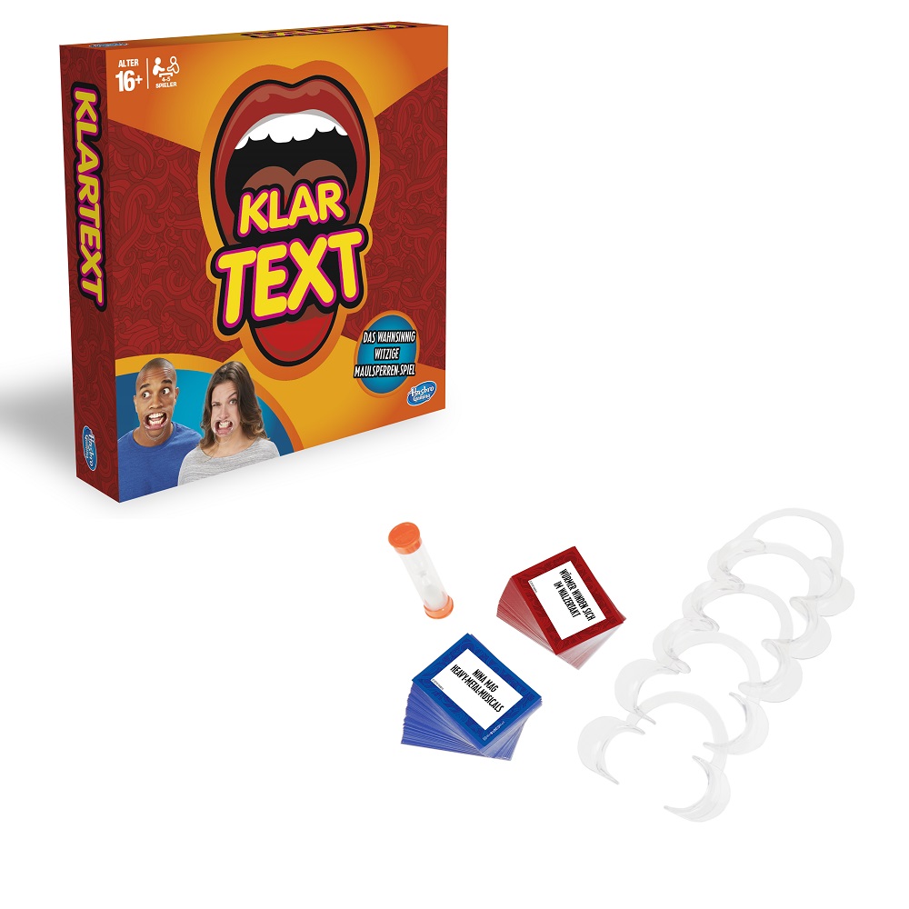 Klartext ist das aberwitzige Partyspiel für fröhliche Stunden mit Freunden und der Familie. Es gilt, seinem Spielpartner auf verschiedenen Kärtchen gedruckte Sätze vorzulesen.
