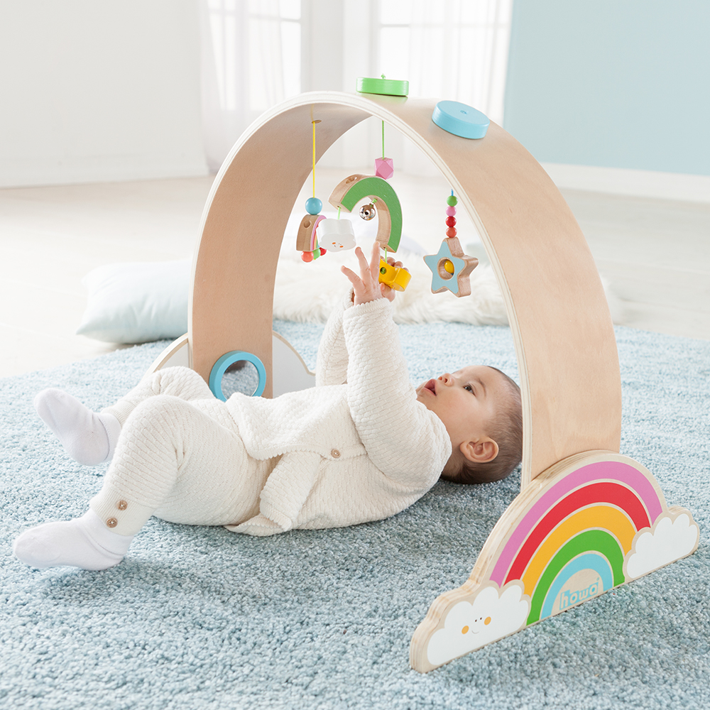 Ab geht’s unter den neuen Spielbogen von howa und los geht’s mit der ersten Trainingseinheit. Das neue Produkt aus der Serie „my rainbow“ hält jede Menge spannender Details für die Kleinen bereit. So ist der Spielbogen ganz im Design eines fröhlichen Regenbogens gestaltet.