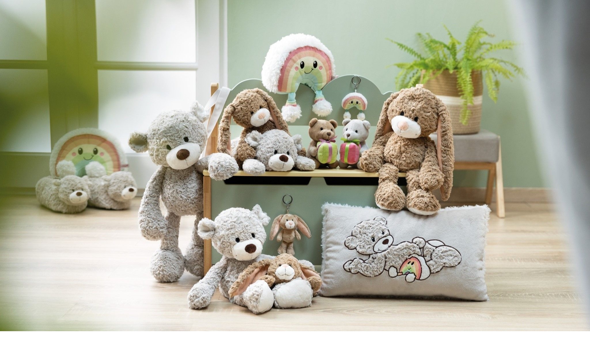 Im Zentrum der neuen Linie der NICI GmbH aus dem oberfränkischen Altenkunstadt stehen ein Bär, ein Hase und ein Regenbogen. Jeder von ihnen hat seine eigene Persönlichkeit und bietet viele Möglichkeiten, ihn in den Alltag zu integrieren. Die Kollektion ist ideal zum Kuscheln, Tragen und Verschenken – perfekt für alle, die das Besondere lieben!