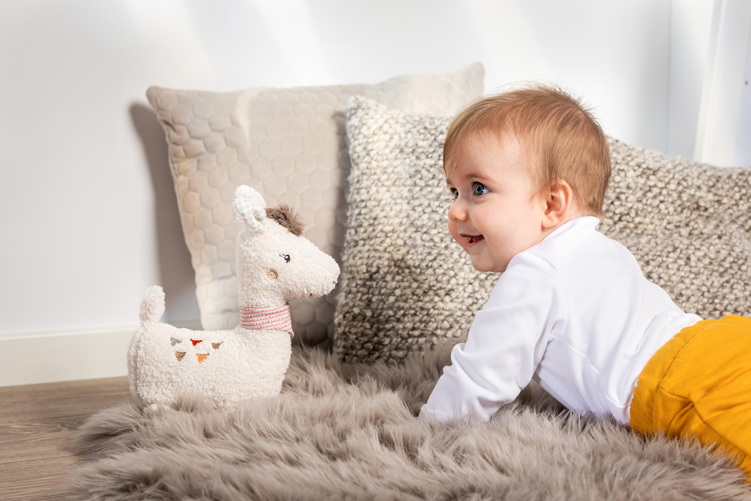 Kleine Abenteurer kommen mit dem Activity-Lama Maya der Fehn-Kollektion „Peru“ garantiert auf ihre Kosten. Während ein Softbeißer dem Nachwuchs beim Zahnen hilft, animieren Greif- und Rasselring sowie im Inneren des Lamas versteckte Glöckchen zum Schütteln und Greifen.