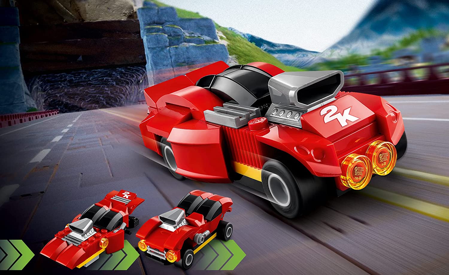 Und wie es der Name schon sagt, besteht die Welt aus Lego Steinen. Die Rennstrecken sind abwechslungsreich und so können plötzlich mal ein Ufo oder gar im Fluss Krokodile auftauchen. Mit hohem Tempo geht es über die Strecke, mit Kurven oder Sprungschanzen.
