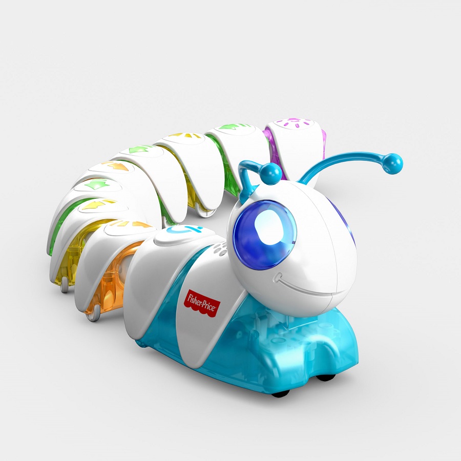 Vorschulkinder können die leicht zu verbindenden Segmente in unendlichen Kombinationen anordnen und so bestimmen, in welche Richtung sich die Raupe bewegt – nach vorne, links oder rechts – , oder ob sie ein paar Sekunden wartet und erst dann ihren Weg fortsetzt.