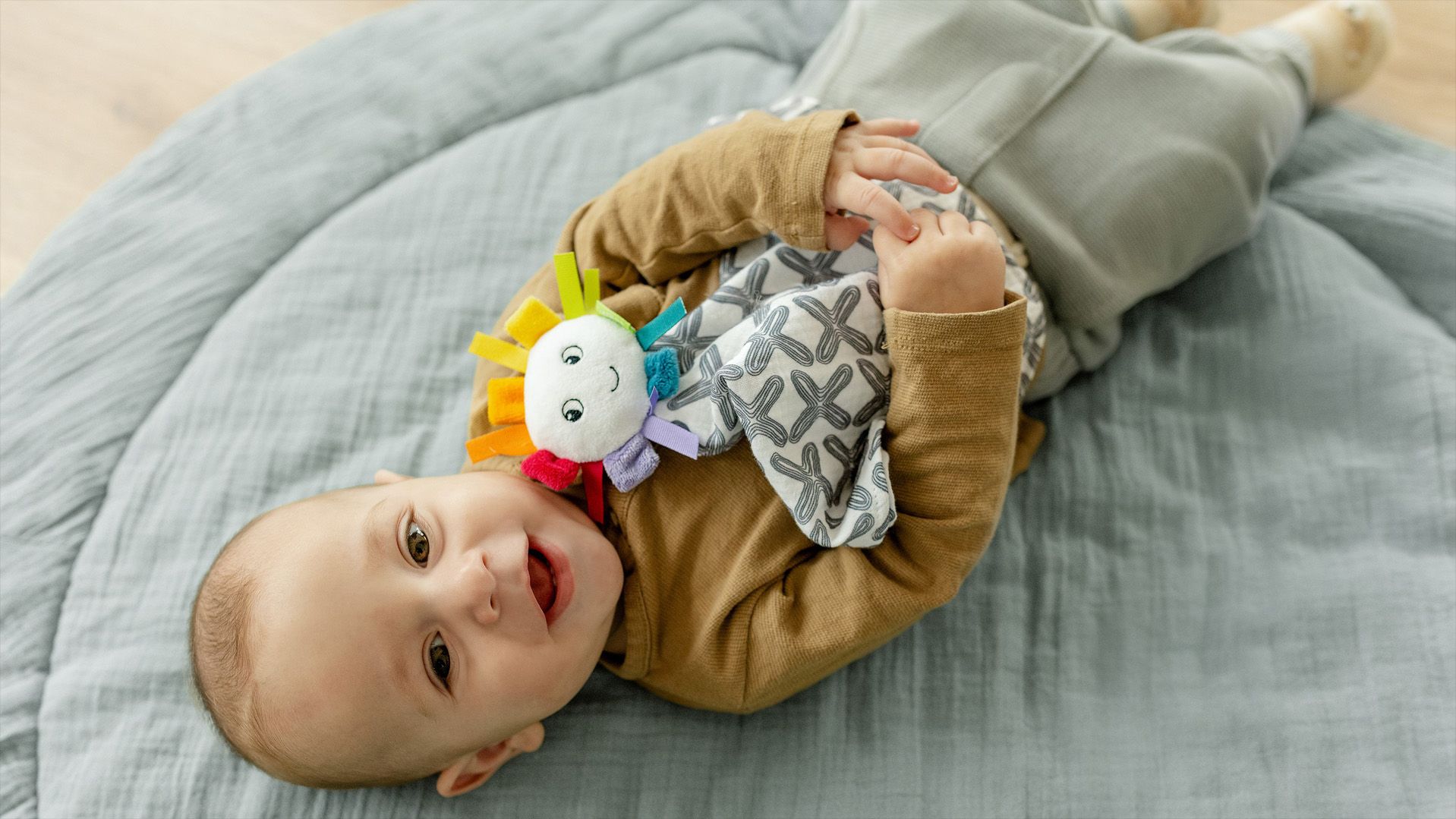 Die neuen Artikel – eine Sonne als Schmusetuch, Knister-Schmetterling, Spieluhr-Schnecke, Activity-Raupe und der dazu passende Activity-Würfel – zeichnen sich durch den schwarz-weißen Signature Stoff aus, kombiniert mit knalligen Farbakzenten. Diese Kontrastgestaltung unterstützt die frühkindliche Wahrnehmung vom ersten Tag der Geburt und begleitet Säuglinge die ersten Monate auf ihrem Weg in eine Welt voller Farben und Formen.