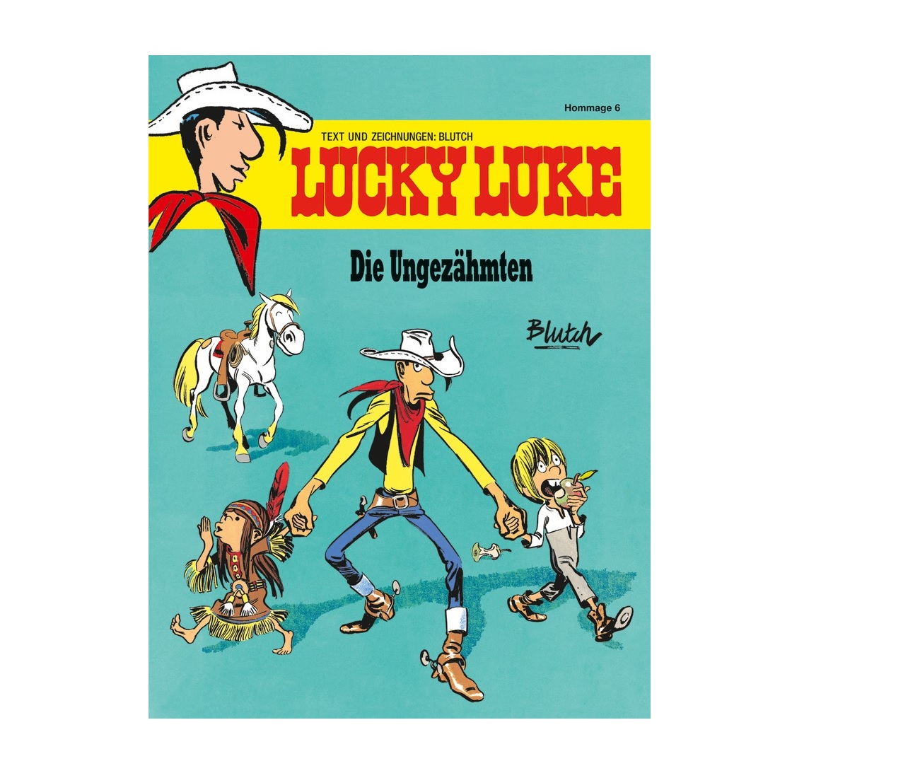 Übrigens! Der französische Texter und Zeichner Blutch wird während des 21. Internationalen Comic-Salons in Erlangen vom 30. Mai bis zum 2. Juni 2024 zu Gast sein. Comicfans können sich am Stand der Egmont Comic Collection die Lucky Luke Hommage von Blutch signieren lassen. Außerdem ist eine große „Blutch-Ausstellung“ im Rahmen des Festivals in Planung.