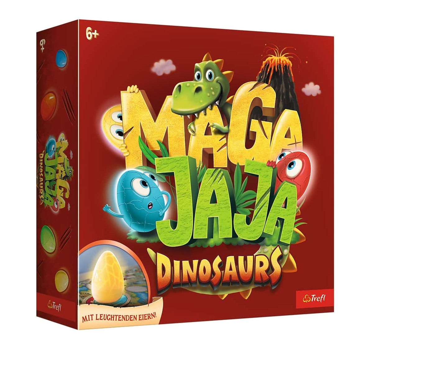 Magajaja Dinosaurs ist ein Familienspiel, mit dem man das Planen lernt und die Wahrnehmungs- und Konzentrationsfähigkeit fördert. Leite die leuchtenden Eier zu den richtigen Stellen auf dem Spielbrett!