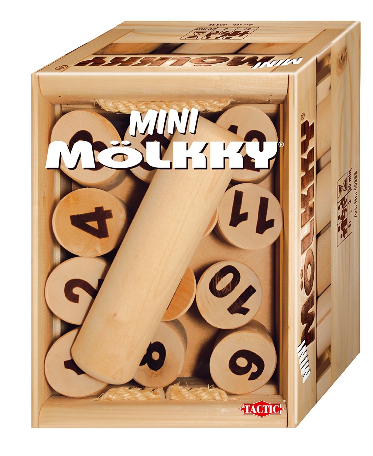 Oder Wikingerschach in Miniformat, da das Spiel ähnlich wie Kubb funktioniert aber wirklich nur ähnlich. Gespielt wird Mini Mölkky in der Wohnung, aber so dass der Schrank oder ähnliches im Eifer des Spiels nicht getroffen werden.