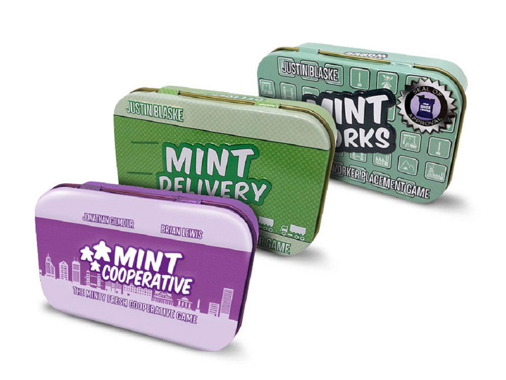 Mint Works, Mint Delivery und Mint Cooperative sind die ersten drei Titel von winzigen Spielen, die die Minz-Spielreihe bilden. In den kleinen Dosen befindet sich die Essenz einiger der beliebtesten Spielarten (Arbeiter einsetzen, Lieferspiel, Kooperativ). Durch die kompakte Größe eignen sich die Spiele als Mitbringsel oder Reisespiel.