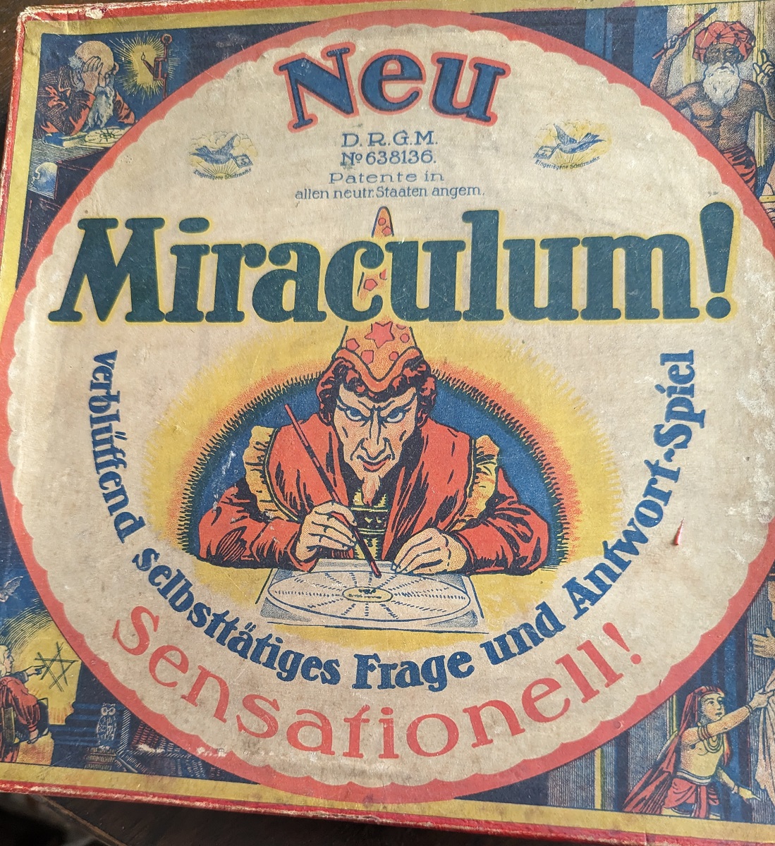 Dann setzt sich sofort der magnetische Pfeil in Gang und bleibt tatsächlich auf der Antwort stehen. Man muss dabei beachten, dass das Spiel über einhundert Jahre alt ist. Und immer noch übt das Spiel halt seinen Reiz aus.