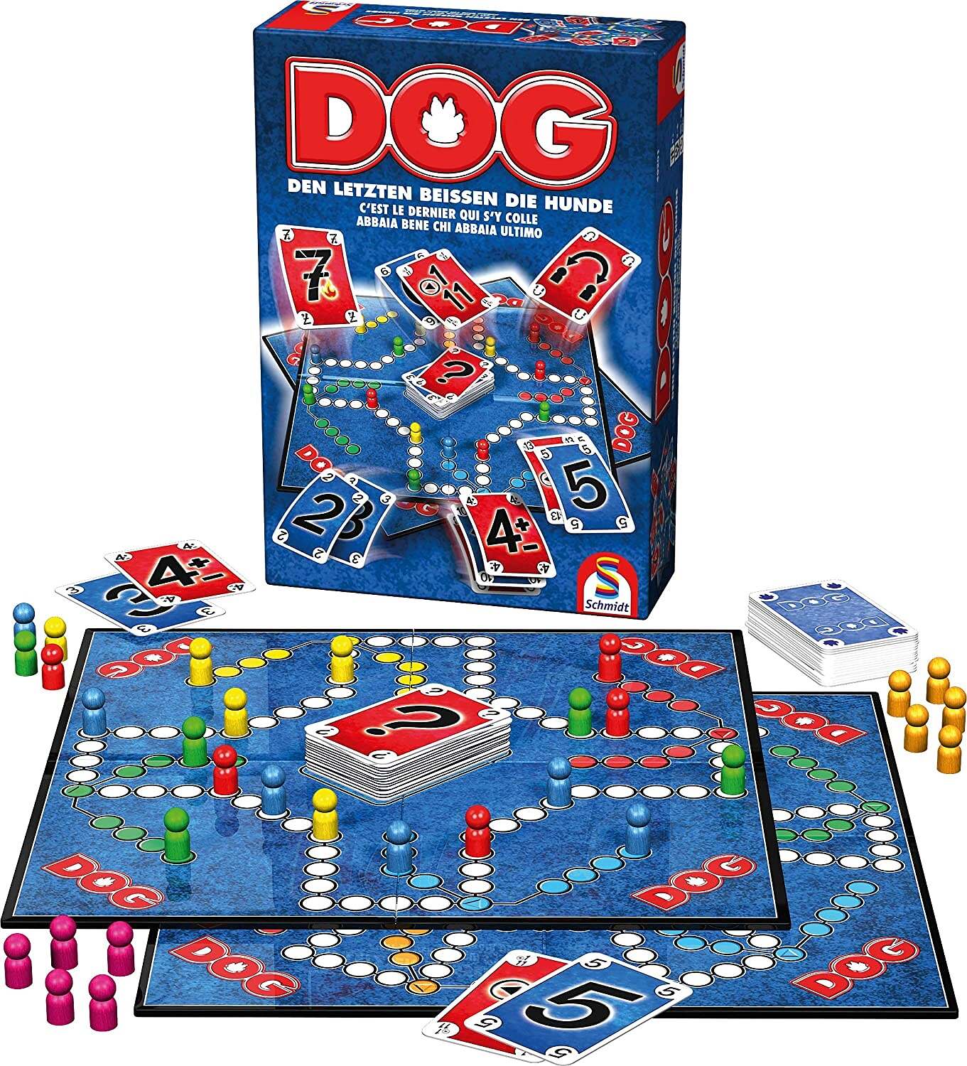 Der moderne Klassiker „DOG“ bildet den Grundstein der erfolgreichen Familienspielreihe. Mit zahlreichen innovativen Auskoppelungen wie „DOG Deluxe“, „DOG Kids“ und „Black DOG“ konnte der Berliner Spielverlag über die Jahre Spielenthusiasten jeden Alters für das aufregende Karten- und Zugspiel begeistern. Dabei ist Teamgeist gefragt. Denn man kommt nur gemeinsam ins Ziel – und den Letzten beißen die Hunde!