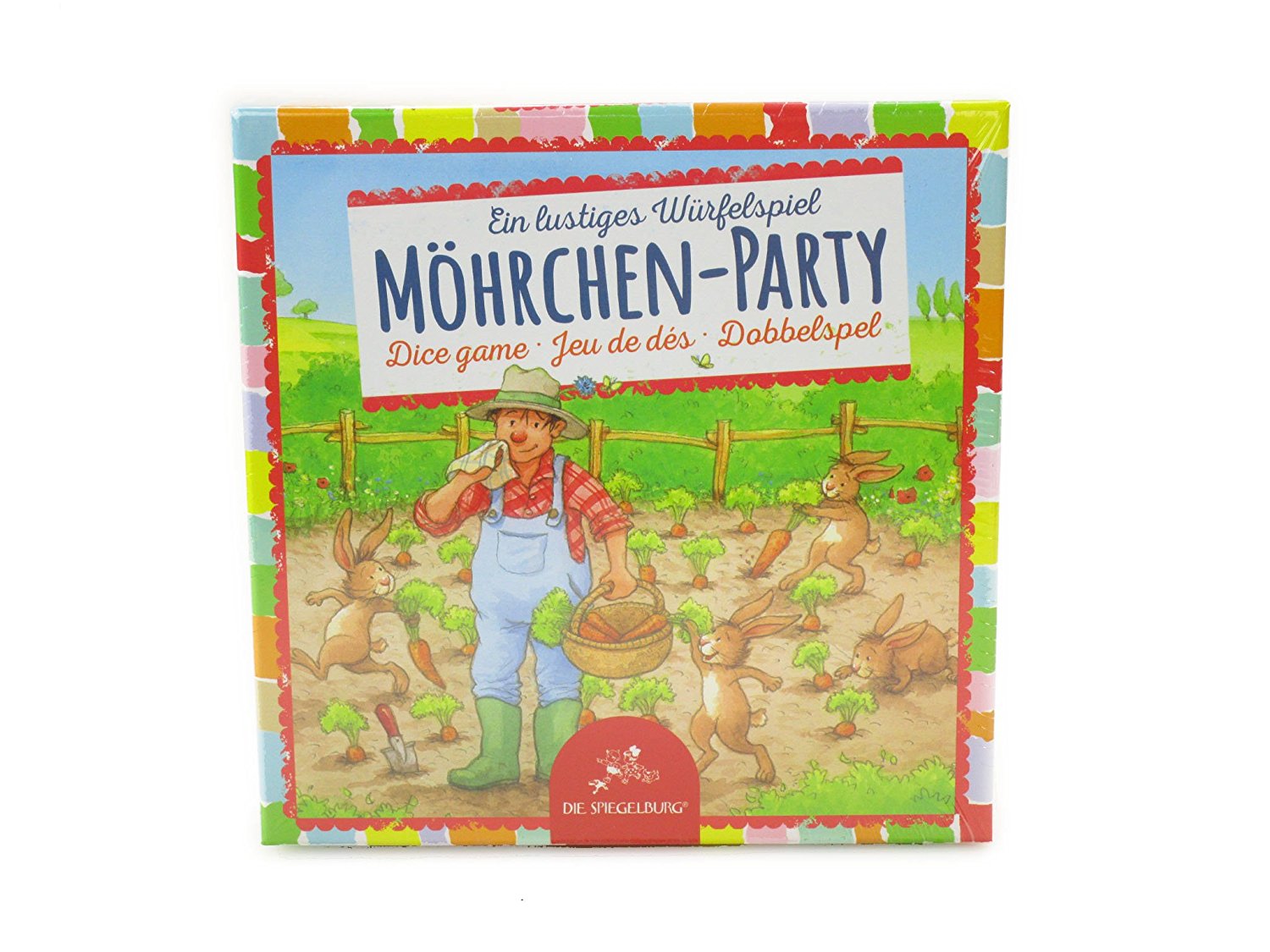 Aus dem Verlag „Die Spiegelburg“ kommt ein lustiges Würfelspiel, das Möhrchen – Party heißt.