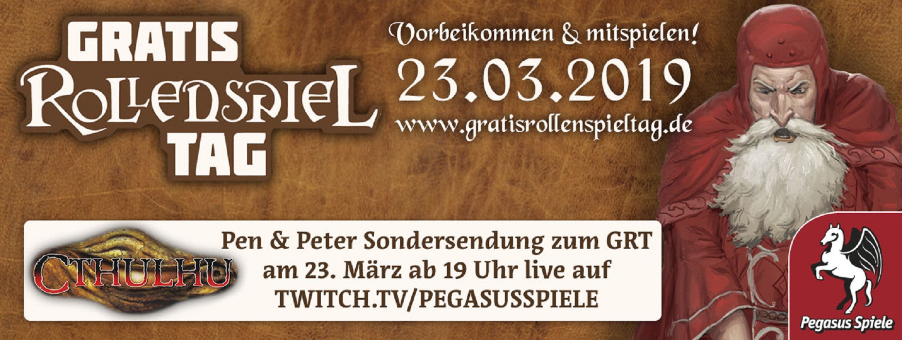 Wer es nicht zu einer der teilnehmenden Spielstätten schafft oder den Tag passend ausklingen lassen möchte, der kann ab 19 Uhr einschalten und eine Cthulhu-Rollenspielrunde live auf Twitch (www.twitch.tv/pegasusspiele) miterleben.