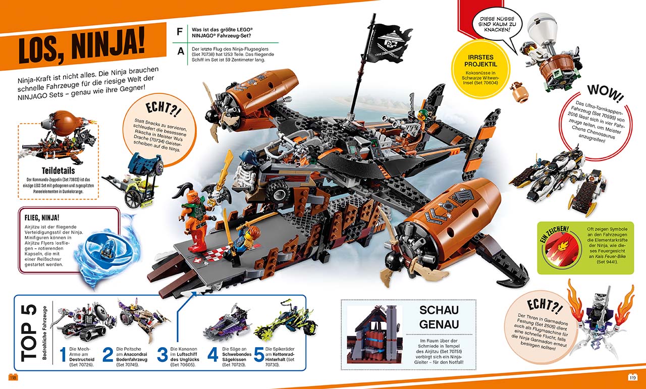 Wer noch tiefer in die LEGO Welt eintauchen will, kann mit LEGO Ninjago – Abenteuer selbst gebaut! Die größten Duelle spannende Ninja-Abenteuer nacherleben. Dank der mitgelieferten Minifigur und dem exklusiven LEGO-Modell lässt sich die Geschichte aus dem Buch gleich nachbauen und weiterspielen.(Erscheinungsdatum: Ende September 2018)