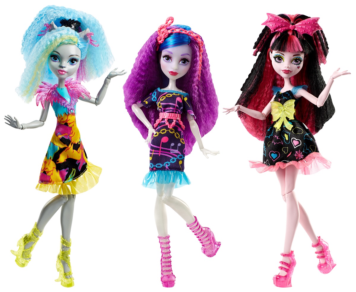 Spiel, Spaß und Spannung wird mit dem neuen Monster High „Elektrisiert“ Deluxe Puppen Sortiment garantiert. Die Puppen sehen in elektrisierender Mode mit kräftig strahlenden Farben, schockierend witzigen Axt-essoires, wie bunte Haarsträhnen oder Spangen, und spannungsgeladenen Frisuren und Make-up zum Sterben schön aus! (ab 6 Jahren, UVP: 31,99€)