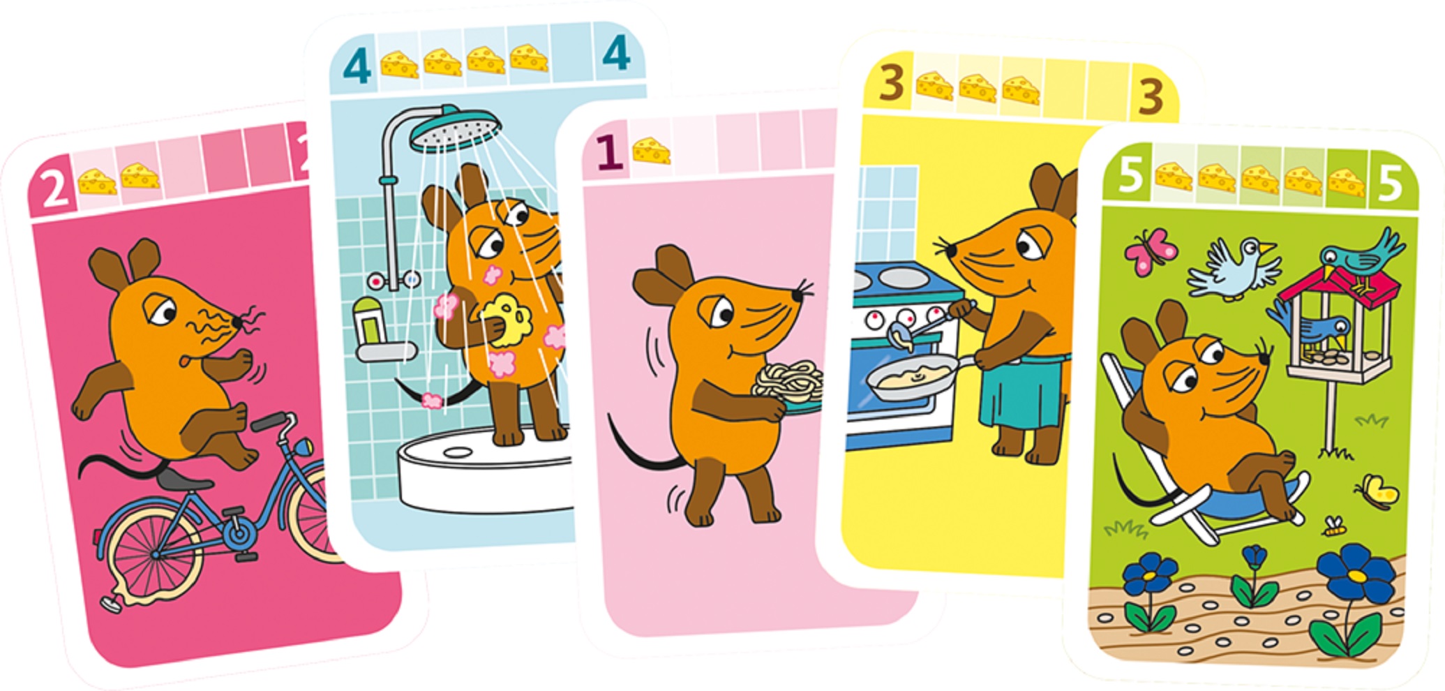 Ob beim Kochen, Radfahren oder Schneemannbauen – die beliebte Maus erlebt viele lustige Abenteuer. Diese gilt es, in der einfachen Kinderspielneuheit von Schmidt Spiele® Karte für Karte zusammenzusetzen.