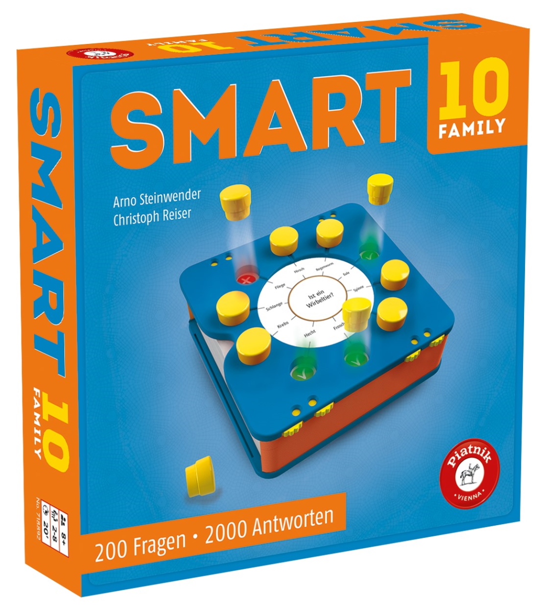 Das revolutionäre und vielfach ausgezeichnete Quizspiel „Smart 10“ bekommt Nachwuchs! Die neue Family-Edition in der stylischen Smartbox enthält 200 Fragen, die alle Familienmitglieder fordern und zu einem vergnüglichen Wettstreit aufrufen.
