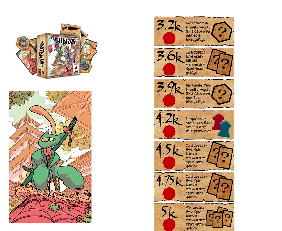 In Ninja Cats, dem neuen Spiel von Oskar Wiśniewski für 2-4 Familienspieler ab 12 Jahren, versuchst du, deine Gegner zwischen dir und den wachsamen Samurai einzukesseln und so vom Spielfeld zu verdrängen. Dabei nutzt du die Handkarten, um deine Ninja Cats auf dem Spielfeld zu bewegen und taktische Spezialmanöver auszuführen.