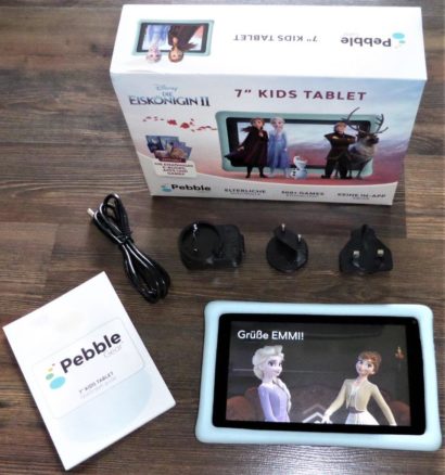 Das Tablet ist für ca. 120,- € erhältlich. Hierin ist die 1-jährige kostenfreie Nutzung des App-Stores enthalten. Das PebbleGear 7“ Kids Tablet ist in 2 verschiedenen Designs erhältlich. In Zusammenarbeit mit Disney wurden hier das Design von Frozen II in blau und von ToyStory 4 in gelb entwickelt.