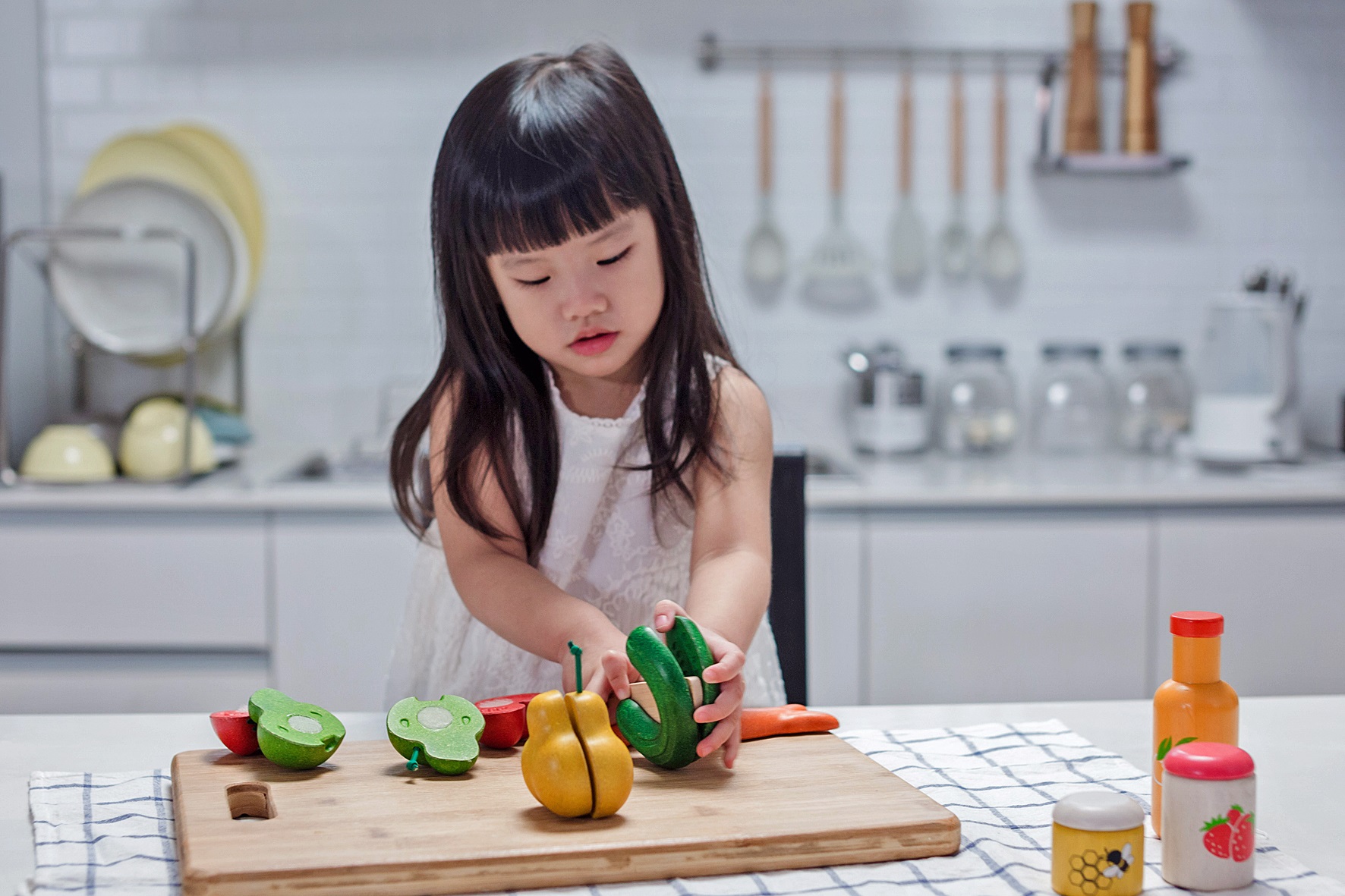 Das lernen Kinder spielerisch beim Wonky Obst- und Gemüse-Spielset.