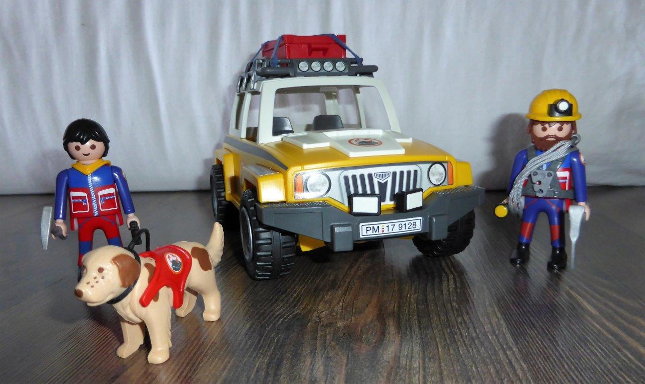 Beachtlich ist die gewählte Konstruktion des Einsatzfahrzeuges. So verfügt es über eine Einzelradaufhängung und eine Negativspur, die das Befahren von schwierigem Gelände ermöglicht. Im Inneren des Fahrzeugs haben die 2 Figuren und der Hund genügend Platz. Außerdem bietet der Dachgepäckträger zusätzlichen Stauraum. Die Möglichkeiten zum Verstauen sind hier sehr gut durchdacht.
