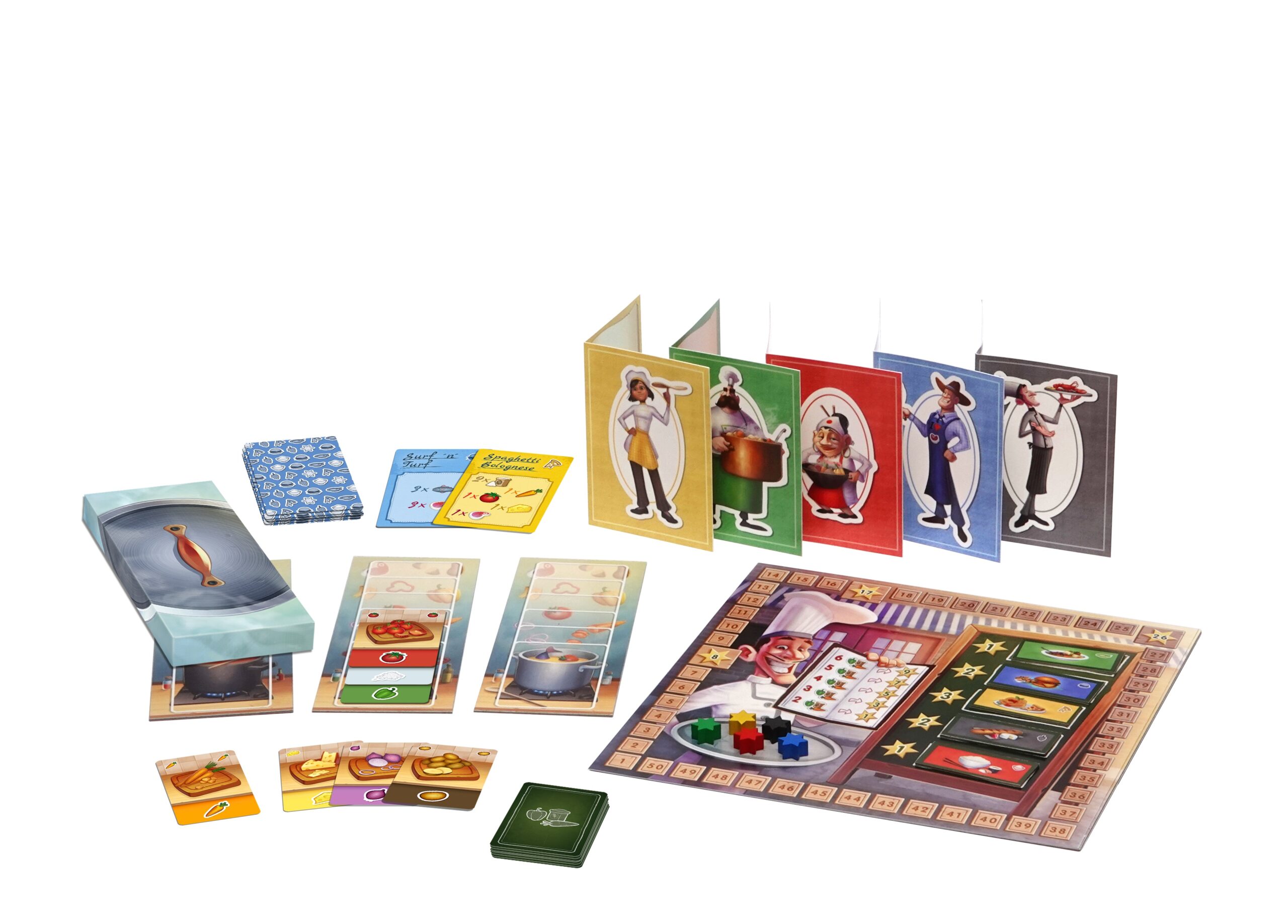 Die Wertung wird auch umgesetzt, sobald man einen Topf mit Zutaten gefüllt hat. Was man so benötigt, steht auf dem Rezept, welches man in seinem Sichtschirm versteckt. Wer viele Rezepte einer Kategorie gesammelt hat, die am Spielende einen hohen Multiplikator aufweisen, kann hier noch einmal kräftig Punkte kassieren – und so vielleicht die meisten Gourmetsterne vorweisen.