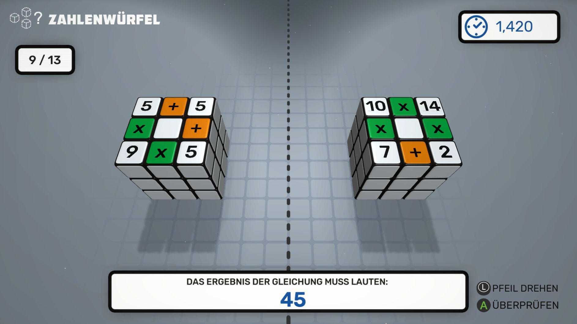 Professor Rubik’s Gehirntrainer bietet zahlreiche Herausforderungen, die entweder alleine oder im lokalen Multiplayer bestritten werden können. Dabei kann das Tempo individuell und nach Geschmack in ganz unterschiedlichen Aktivitäten gewählt werden, wie zum Beispiel Knobeln auf Zeit oder komplexere Puzzles.