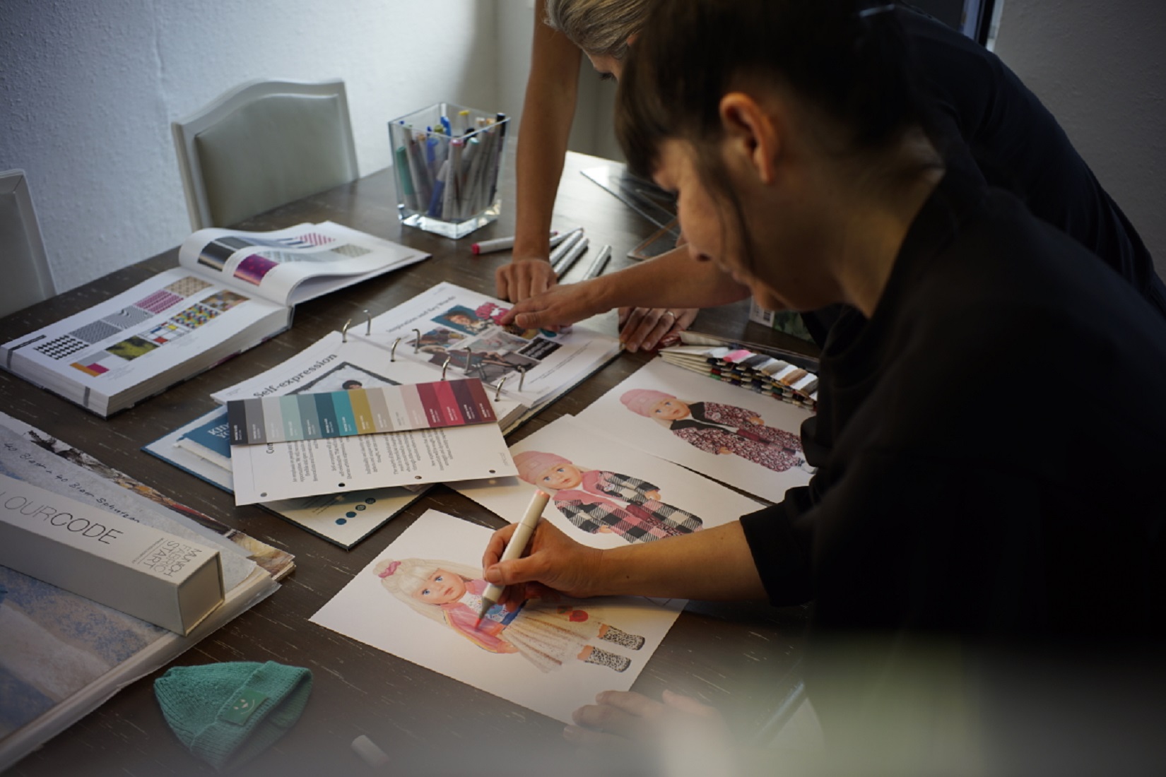 Die Herausforderungen beim Modedesign für Puppen: Im Gegensatz zur klassischen Modebranche geht es bei Puppenmode um ein Kinderspielprodukt, das höchsten Qualitätsansprüchen und Sicherheitsbestimmungen unterliegt. „Was viele unterschätzen: Kinderkleidung lässt sich nicht einfach auf Puppengröße verkleinern und übertragen“, erklärt Carmen Leutheuser. „Kinder sollten die Puppe leicht an- und ausziehen können, Verschlüsse müssen leicht zu öffnen und zu schließen sein. Die Kleidung darf nicht zu slim fit – also zu eng – geschnitten sein, soll aber trotzdem stylish aussehen. Da gibt es einiges zu beachten“, verrät Carmen Leutheuser.