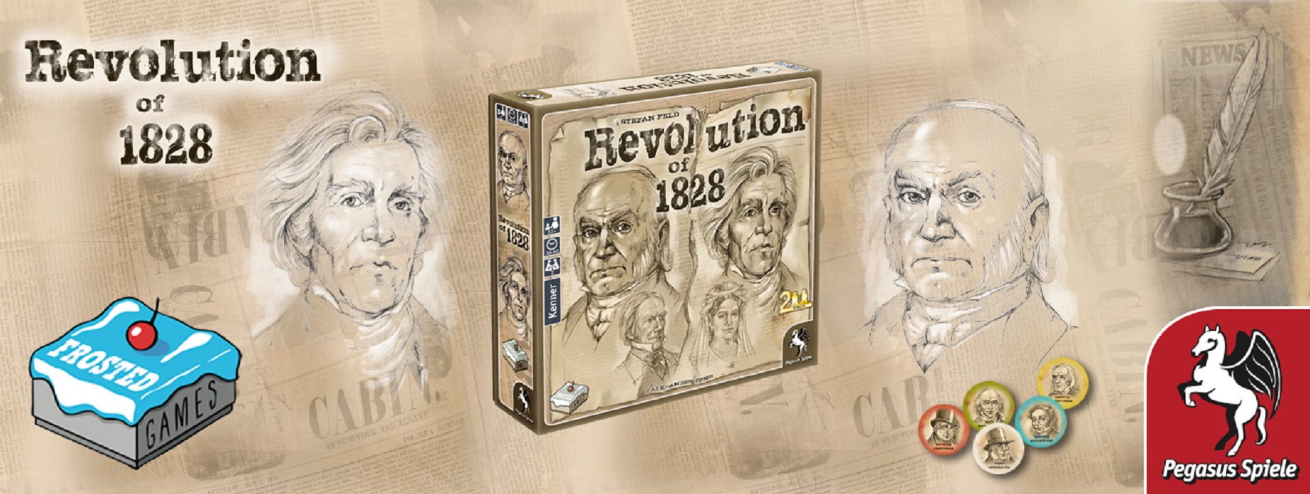 Stattdessen greift Revolution of 1828 eine in Brettspielkreisen bisher eher stiefmütterlich behandelte historische Epoche auf: Den US-Wahlkampf des namengebenden Jahres 1828. Zwei Spieler schlüpfen in die Rollen der Präsidentschaftskandidaten.