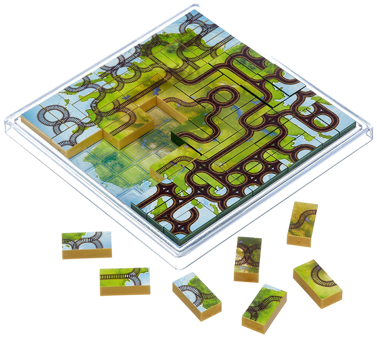 Auf den Spielsteinen sind Straßen bzw. Eisenbahnlinien dargestellt. Diese sind alle unterschiedlich gestaltet, so befinden sich unterschiedliche Verzweigungen auf den Abbildungen. Sie müssen die Steine so aneinander reihen, dass sich daraus ein Verkehrsnetz ergibt.