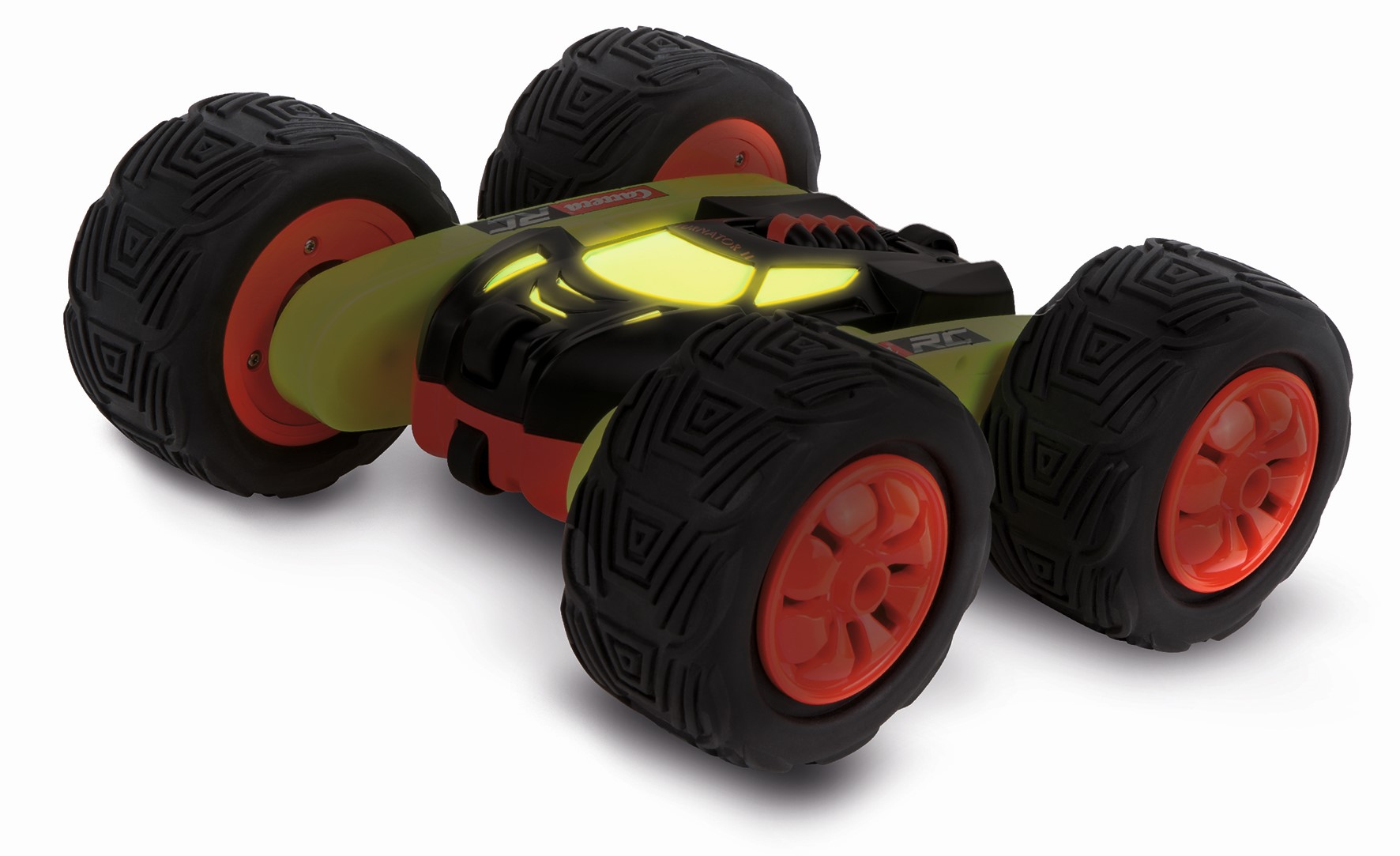 Die außergewöhnliche Konstruktion des Carrera RC „Turnator – Glow in the Dark“ sorgt für jede Menge Fahrspaß, denn die getrennt steuerbaren Achsen erlauben dem Piloten 360° Flip-Action-Stunts in alle Richtungen. Für den 27,5 cm Carrera RC „Turnator – Glow in the Dark“ gibt es nicht nur vor und zurück: