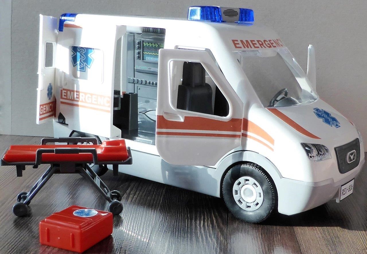 Unsere Tochter hat sich sehr zu Ostern über diesen Krankenwagen gefreut, welcher nunmehr unverzichtbar im häuslichen Fuhrpark verweilt.