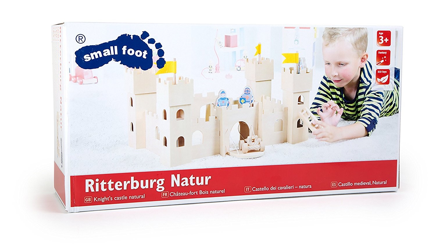 Alle Teile, außer den Rittern und den Fahnen, sind aus naturbelassenen Holzplatten. Wir finden es eine sehr schöne Idee, dass hier jeder die Freiheit hat, die Burg selbst zu gestalten.