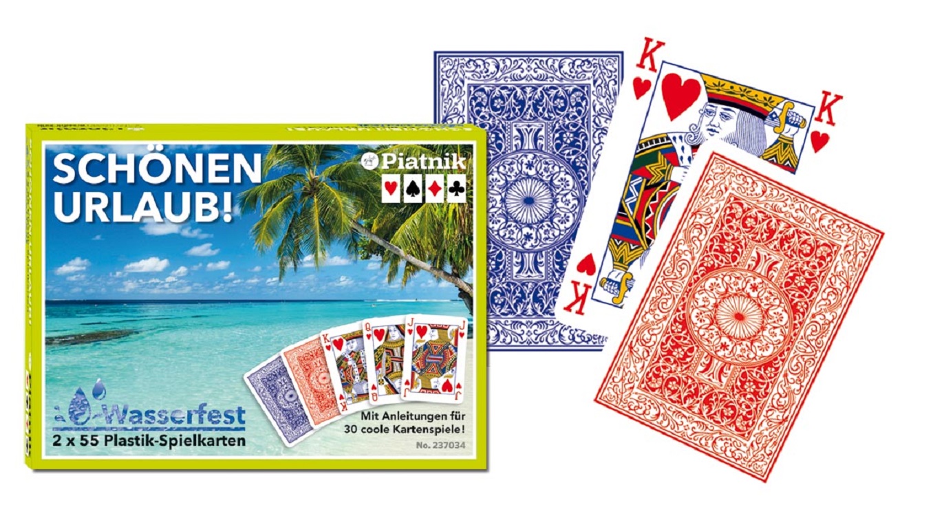 Ob am Strand oder am Pool – die neuen Plastik-Spielkarten sind immer dabei und halten auch den einen oder anderen Wasserspritzer aus. Also Pokerface aufsetzen und los geht’s!