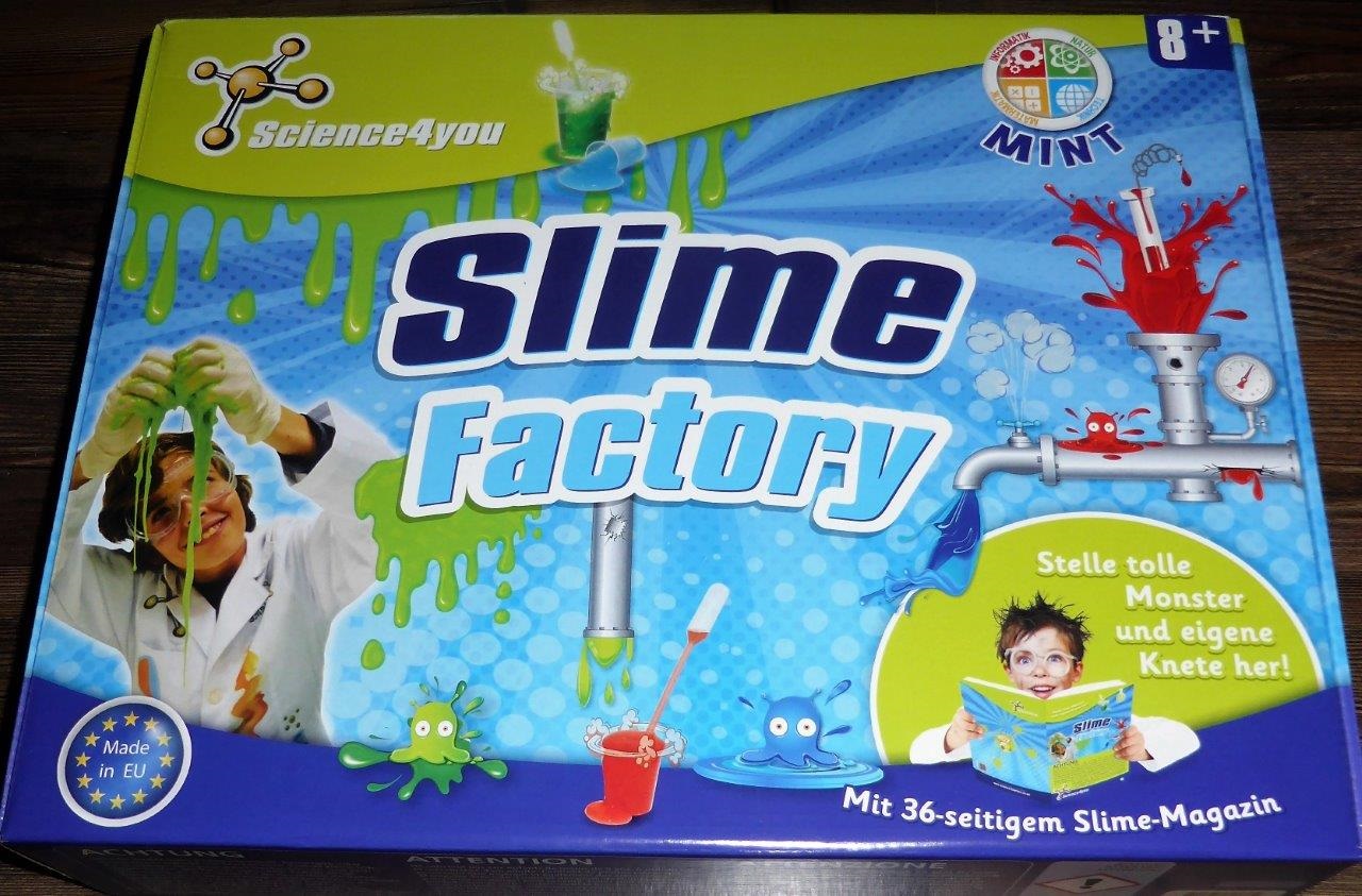 Ein Großteil der benötigten Utensilien ist im Lieferumfang enthalten. So besteht der Kasten aus Slime-Magazin, Schutzbrille, Schutzhandschuhe, Pasteurpipetten, Reagenzgläsern mit Deckel, großem Messbecher, kleinem Messbecher mit Deckel, Kunststoffbehälter, Calciumchlorid, Fläschchen für die Natriumalginatlösung, Holzspatel, wiederverschließbaren Kunststoffbeuteln, grüne Lebensmittelfarbe, rote Lebensmittelfarbe, gelbe Lebensmittelfarbe, blaue Lebensmittelfarbe, Guarkernmehl, Maisstärke und einem Kunststoffspatel.