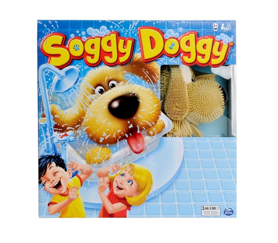 Wer es als erstes einmal und möglichst trocken um die Badewanne schafft, gewinnt. Landet ein Spieler auf einem „Pfoten-Feld“, pumpt er Wasser aus der Dusche, bis Soggy Doggy gründlich nass ist.