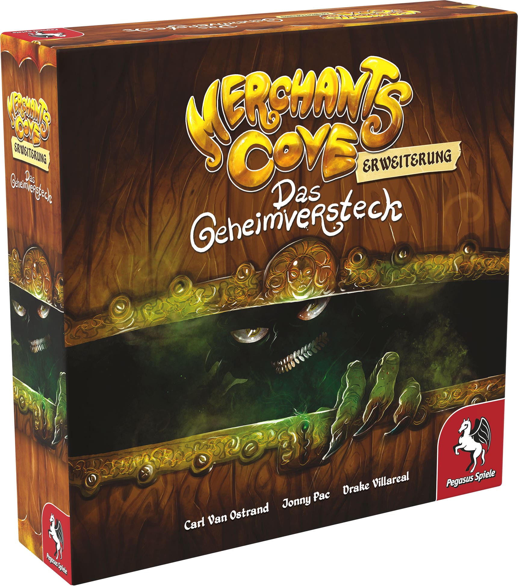 Das Kennerspiel Merchants Cove bietet ein asymmetrisches Spielerlebnis dank individuellem Spielmaterial und eigenen Regeln für alle Charaktere. Parallel zum Grundspiel sind auch vier Erweiterungen bei Pegasus Spiele erschienen: Die drei Charaktererweiterungen Die Drachenzüchterin, Der Gastwirt und Das Orakel sowie Das Geheimversteck mit neuen Spielelementen.