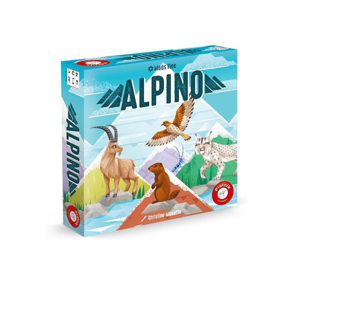 Die einzigartige Tierwelt der Alpen steht im Zentrum des Familienspiels „Alpino“. Plättchen für Plättchen entstehen im Domino-Stil neue Lebensräume für Steinböcke, Luchse, Bussarde und Co. Wer siegen möchte, braucht eine gute Taktik: Spezialisierung auf eine Tierart oder doch lieber auf Vielfalt setzen? Die Konkurrenz schläft aber auch nicht und so ändert sich Runde für Runde die Wertigkeit der verschiedenen Tierarten.