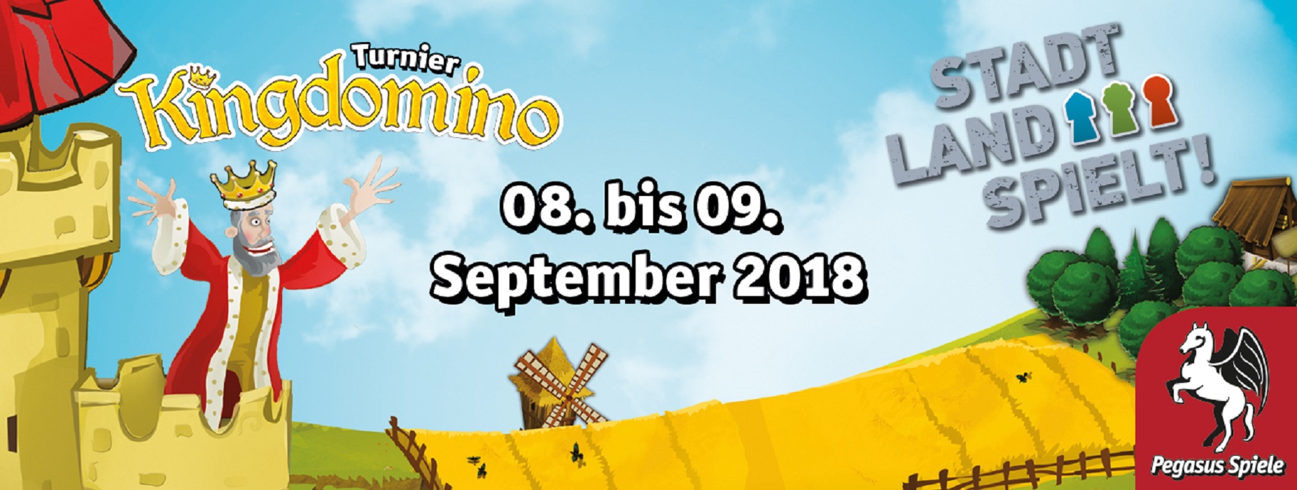 In Kooperation mit Pegasus Spiele wird im Rahmen von Stadt-Land-Spielt! in diesem Jahr der „Kein schöner Land – Wettbewerb 2018“ angeboten. Im Zuge dessen können bei Kingdomino-Turnieren, die neben gemeinsamem Spielspaß über Generationen, Herkunft und soziale Grenzen hinweg, auch zahlreiche Preise gewonnen werden.
