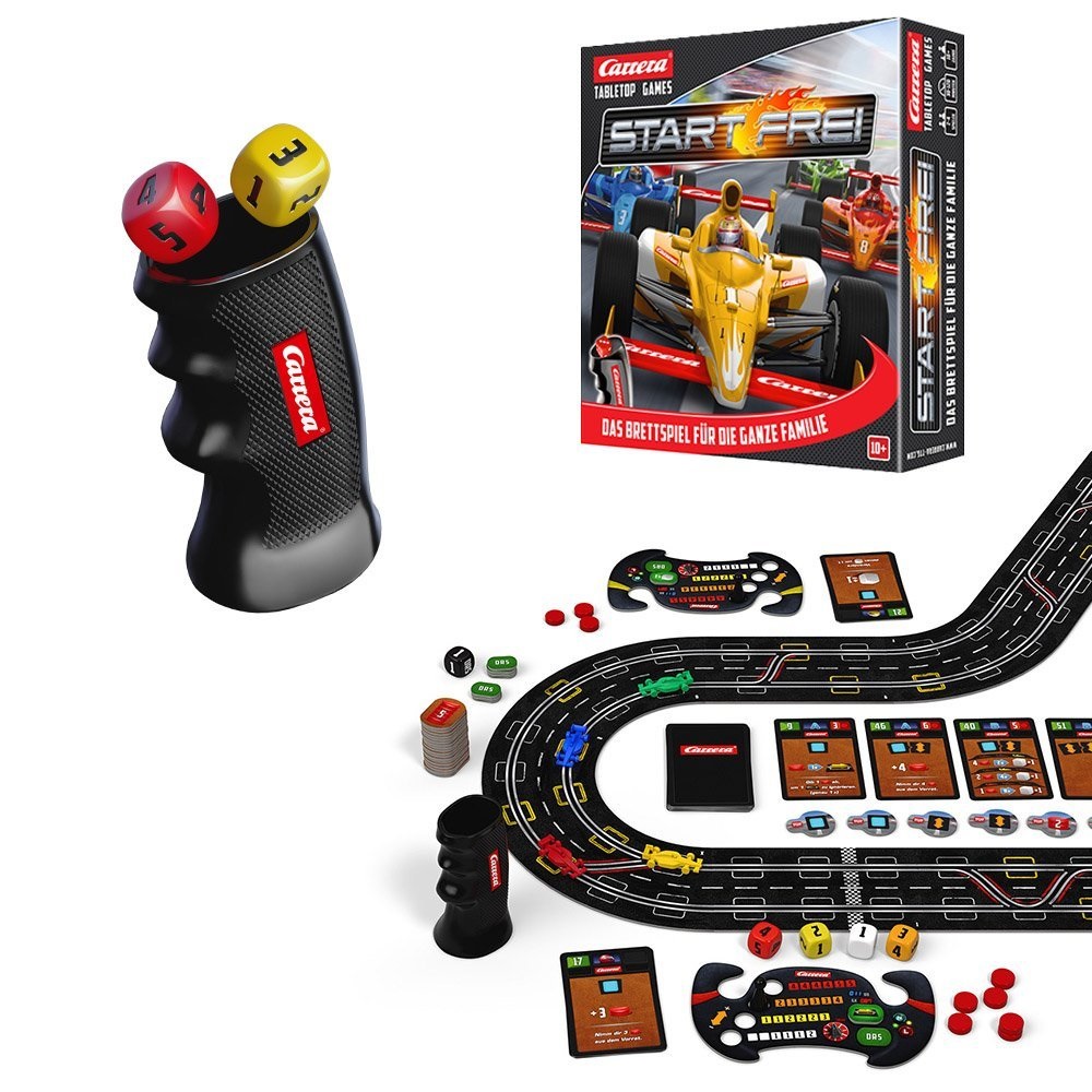 Mit Carrera verbindet man immer die Autorennbahnen und so stand Carrera auch als Pseudonym für Autorennbahnen. Start Frei ist das große Rennspiel, welches anlässlich des 50-jährigen Firmenjubiläum erschienen ist, um halt ein Autorennen auch auf dem Spieltisch zum Leben zu erwecken.