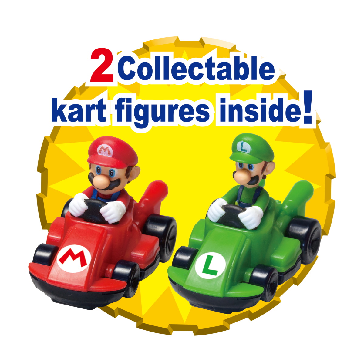 Ein spannendes Unterfangen – denn auf der Strecke warten einige Hindernisse, wie der Wackelsteg, die Rampe, die Schlangenlinienbahn oder die Rolltreppe. Das Set ist für zwei Spieler geeignet und enthält neben der Kartbahn mit Rundenzähler auch zwei Karts, sodass Mario und Luigi zum abenteuerlichen Rennen antreten können.