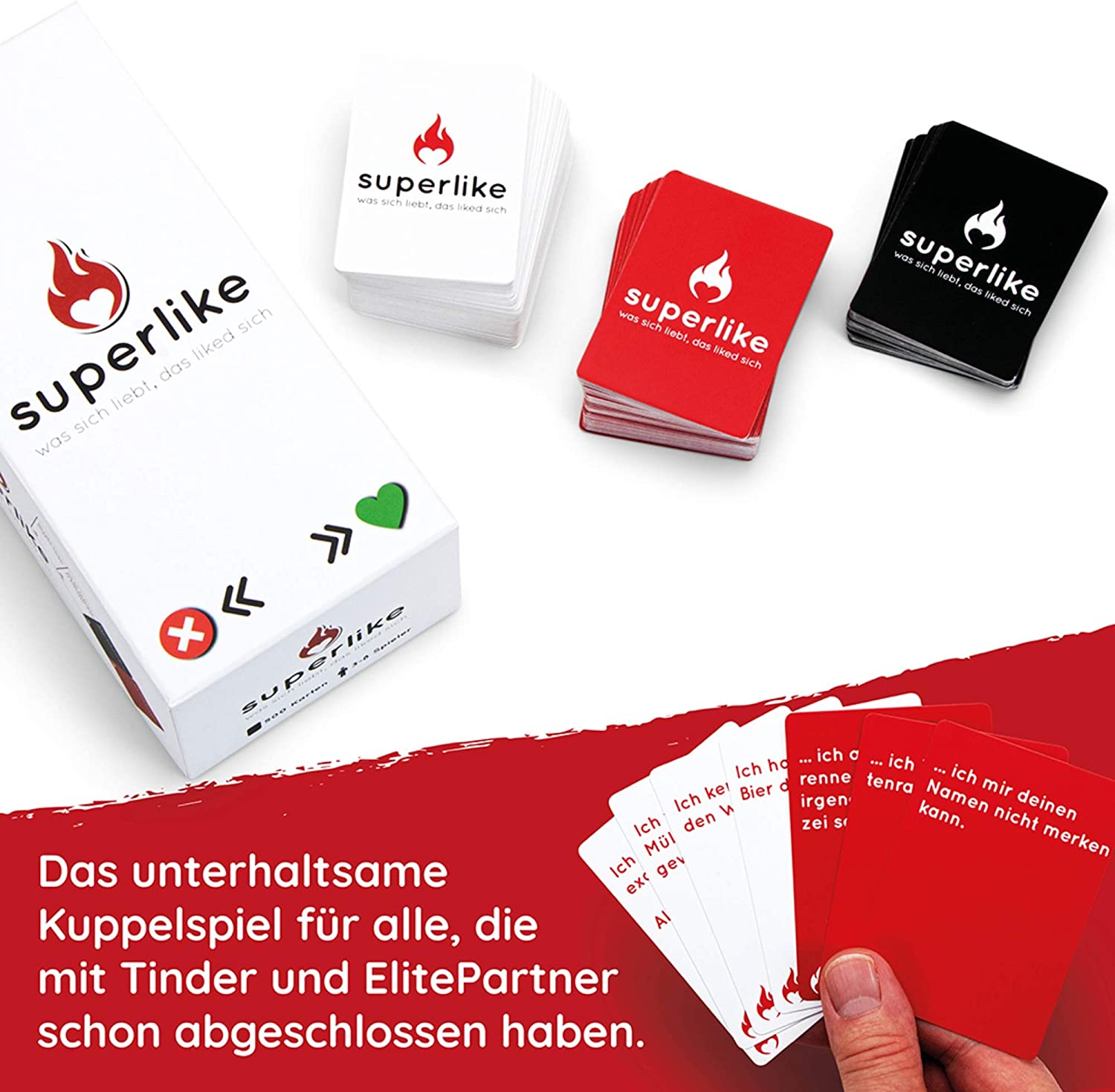 Schluss mit Single sein und dem alleinigen Verspeisen der Familien-Pizza Sonntagabends! Mit Superlike begeben sich die Spieler auf analoge Partnersuche. Charmant den Junggesellen um den Finger wickeln, ist bei diesem Kartenspiel nicht gefragt! Die Spieler erobern das Herz des Junggesellen nur mit einer großen Portion Selbstliebe und dem geschickten Ausstechen der Mitspieler.