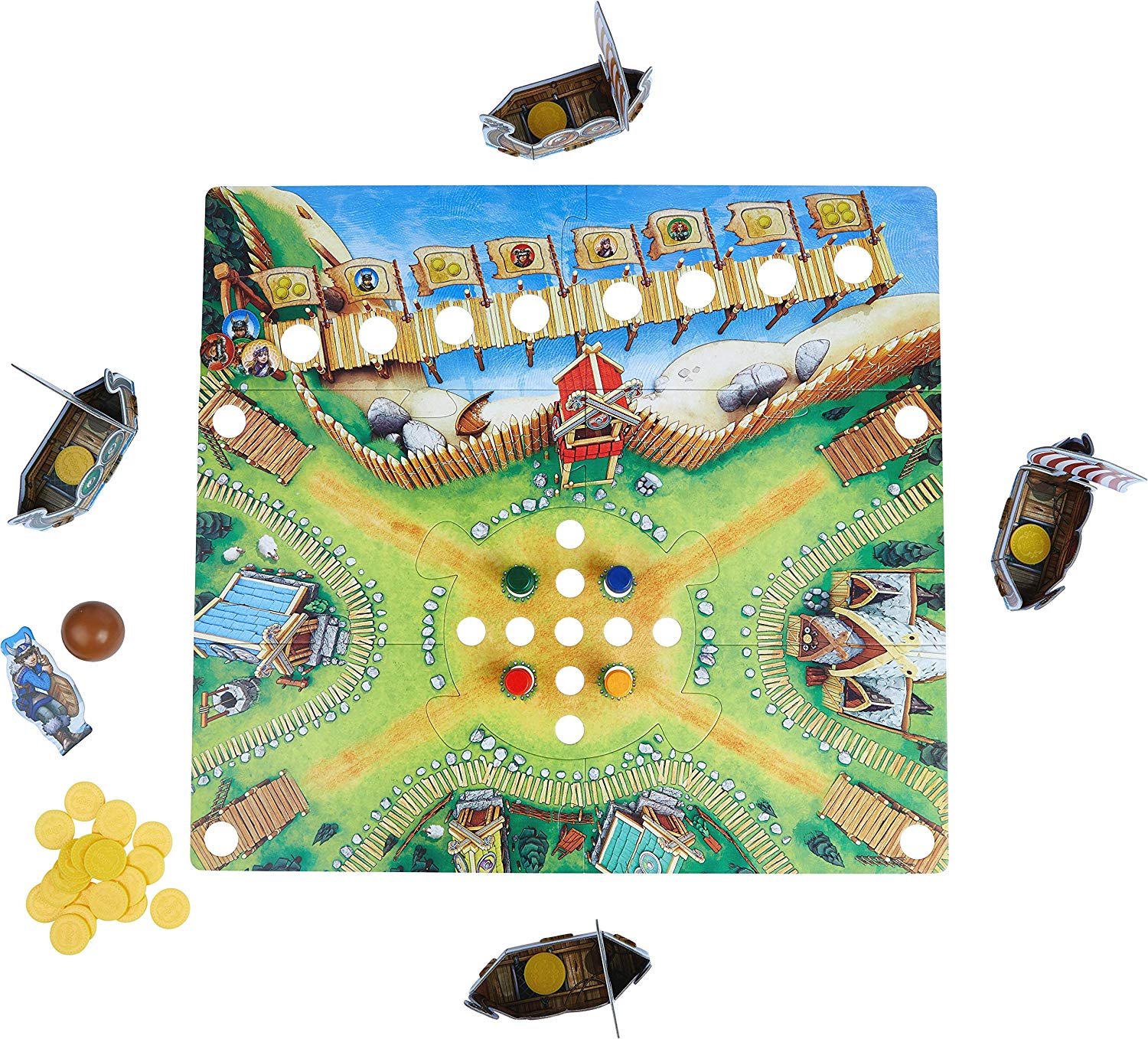 Ehe unsere Wikinger das alljährliche Fässerkegeln starten, müssen der Spielplan und das reichliche Spielmaterial vorbereitet werden.