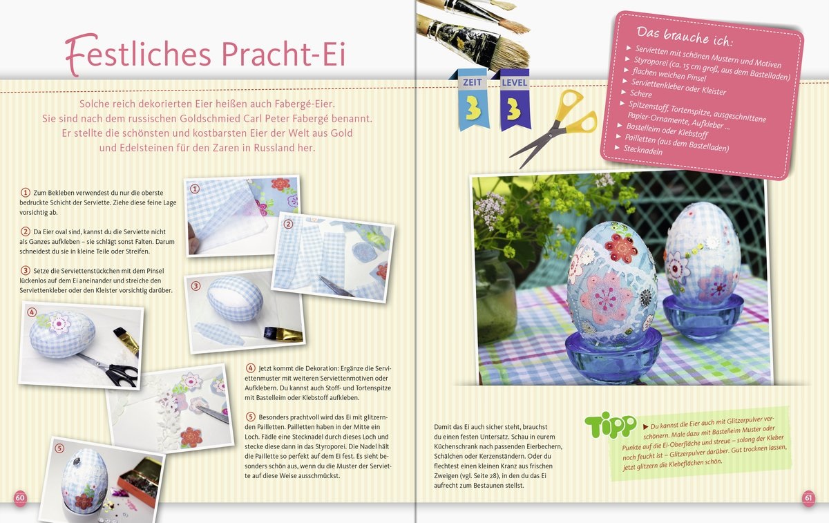 Dieses Bastelbuch mit vielen tollen Ideen für die Osterzeit erschien 2014 im Ravensburger Buchverlag. Geschrieben wurde es von Marlies Schiller, die als Designerin arbeitet und als Kind selbst gern kreativ war.