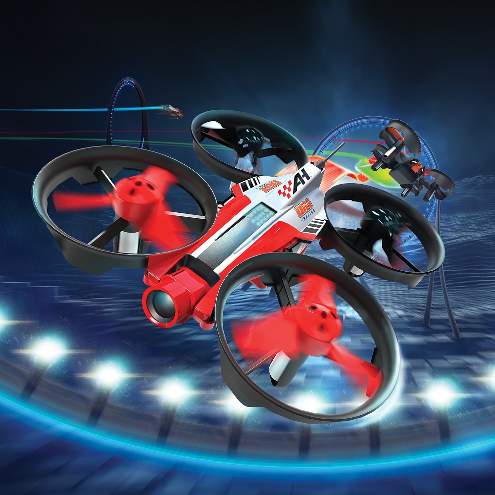 Nichts für schwache Nerven: Die DR1 FPV Race Drohne, gesteuert durch einen 2,4-GHz-Controller, katapultiert Rennpiloten ab zehn Jahren via First-Person-View-Brille und Livestream direkt in das Cockpit ihrer Renndrohne!