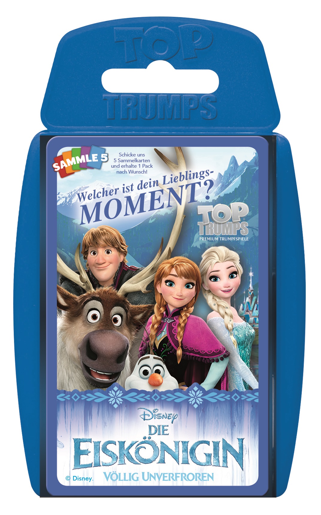 TOP TRUMPS Die Eiskönigin – 30 Momente ist bei Winning Moves zum Preis von 4,95 Euro (unverbindliche Preisempfehlung) erschienen.