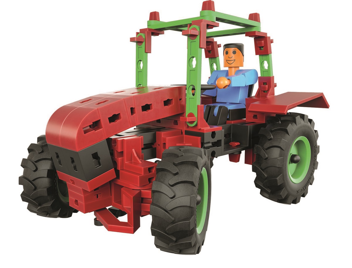 Enthalten sind 130 Bauteile, aus denen zwei Traktormodelle entstehen. Windschnittig wird es beim dritten Modell: Einem Dragster, der im Motorsport bei Beschleunigungsrennen zum Einsatz kommt. Damit ermöglicht der Spielwarenhersteller „Made in Germany“ jungen Konstrukteuren spielerischen Zugang zur Welt der motorisierten Fahrzeuge.